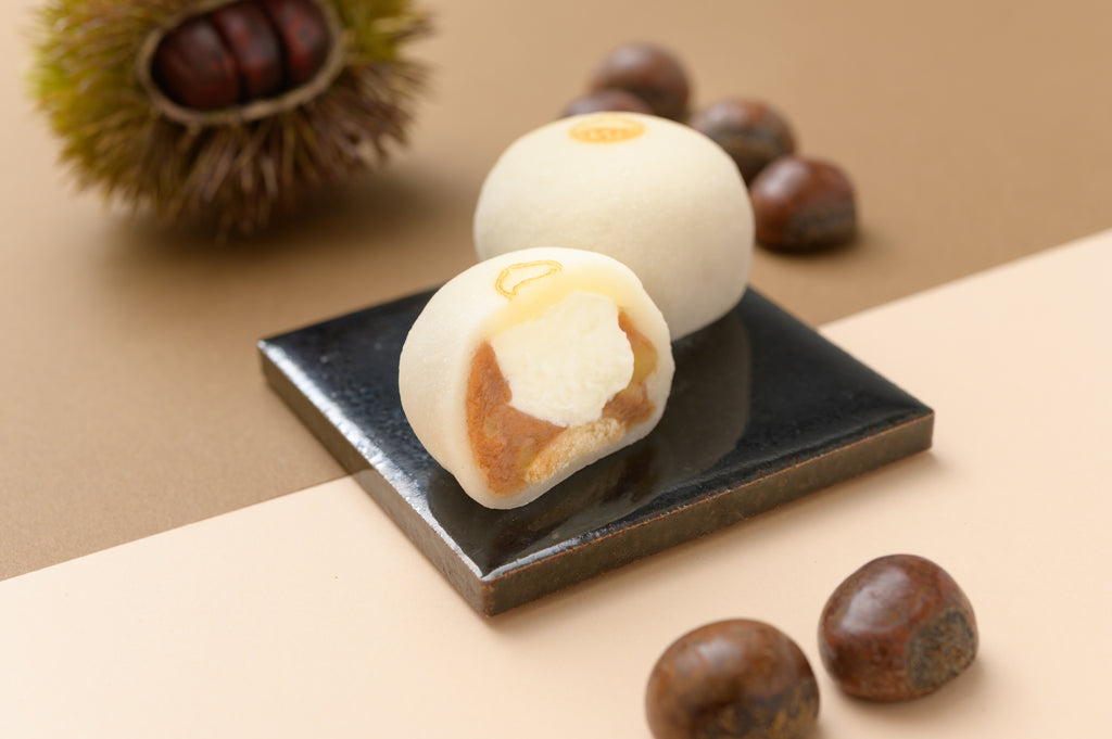 フランス産栗餡×生クリーム×きざみ栗を果朋特製フワフワ羽二重餅で包み込みました。